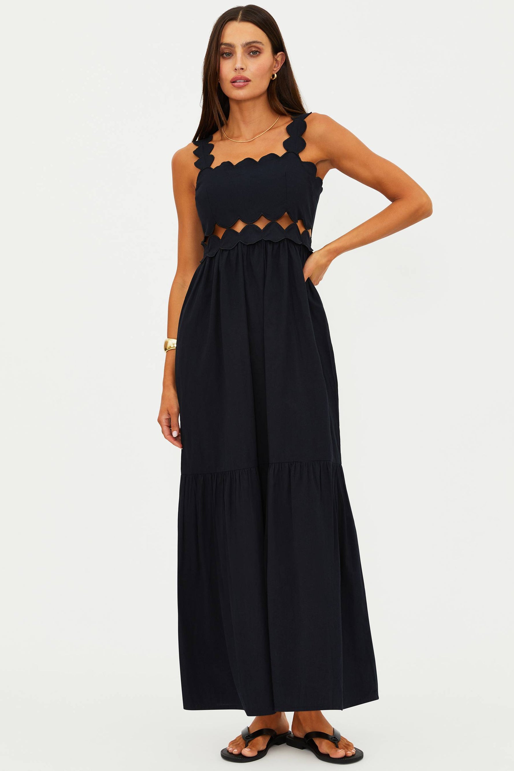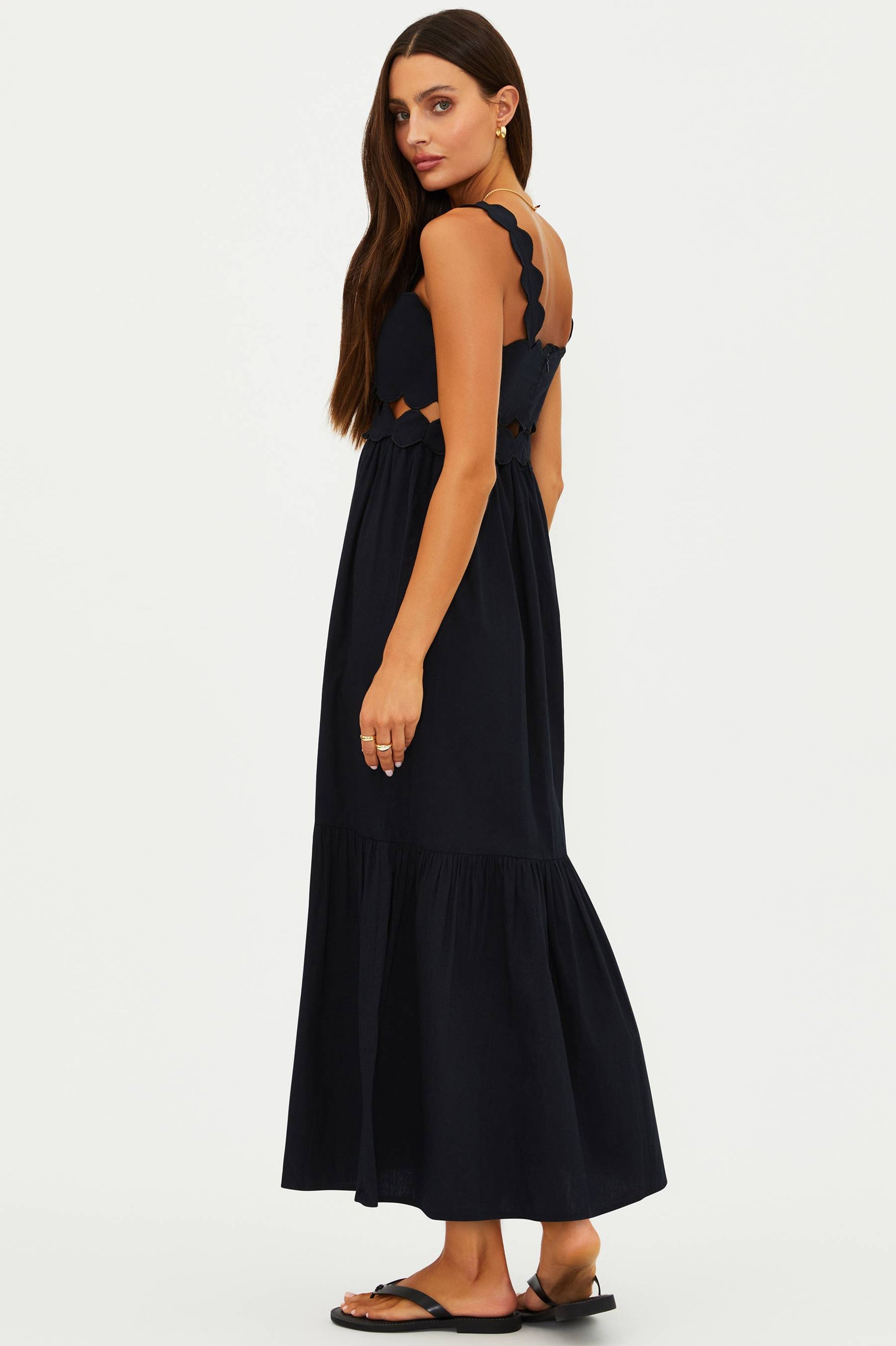 - Wide scallop-edge straps for a feminine touch